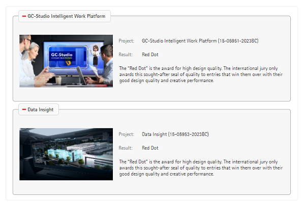 近日,備受國際矚目的德國紅點獎公布了視覺傳達類2023年度獲獎名單,移動云數據可視化DataInsight與GC-Studio智作平臺兩款產品在眾多高水準參賽作品中脫穎而出,斬獲兩項紅點品牌與傳達設計大獎。