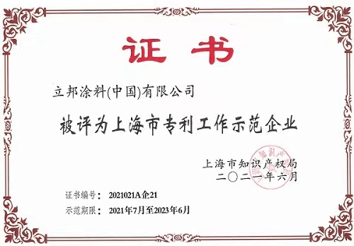 立邦獲評上海市專利工作示范企業(yè)