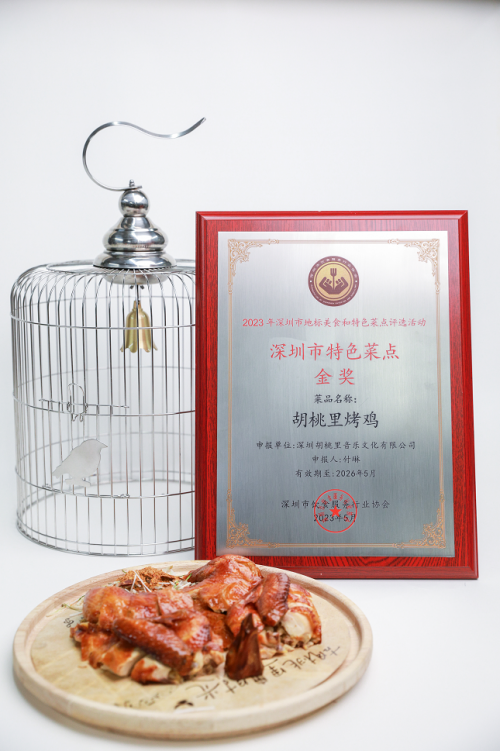 研發(fā)這道菜廚師團(tuán)隊(duì)就花了整整一年的時(shí)間,反復(fù)嘗試,才有了今天的成果。今年胡桃里烤雞也不負(fù)眾望地獲得了深圳餐飲名菜獎(jiǎng)項(xiàng)!