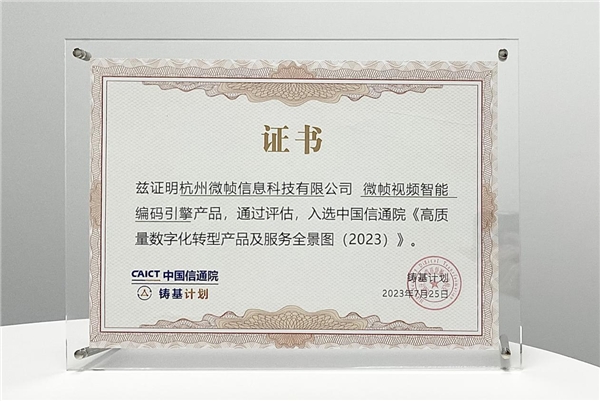 7月27日,由中國信通院主辦的“2023數(shù)字生態(tài)發(fā)展大會”暨中國信通院“鑄基計(jì)劃”年中會議在北京召開。本次大會全面總結(jié)了“鑄基計(jì)劃”上半年度工作成果,并重磅發(fā)布了《高質(zhì)量數(shù)字化轉(zhuǎn)型產(chǎn)品及服務(wù)全景圖(2023)》。微幀科技作為全球領(lǐng)先的視頻編碼及AI解決方案提供商受邀出席會議,【微幀視頻智能編碼引擎】以行業(yè)領(lǐng)先的編碼性能、不斷突破技術(shù)極限的自研能力,實(shí)力入選全景圖。
