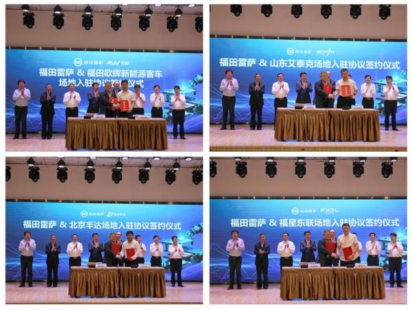 隨后,福田雷薩與福田歐輝新能源客車(chē)、宣化產(chǎn)業(yè)基地入駐供應(yīng)商——山東艾泰克、福星東聯(lián)以及北京豐達(dá)進(jìn)行場(chǎng)地入駐簽約。
