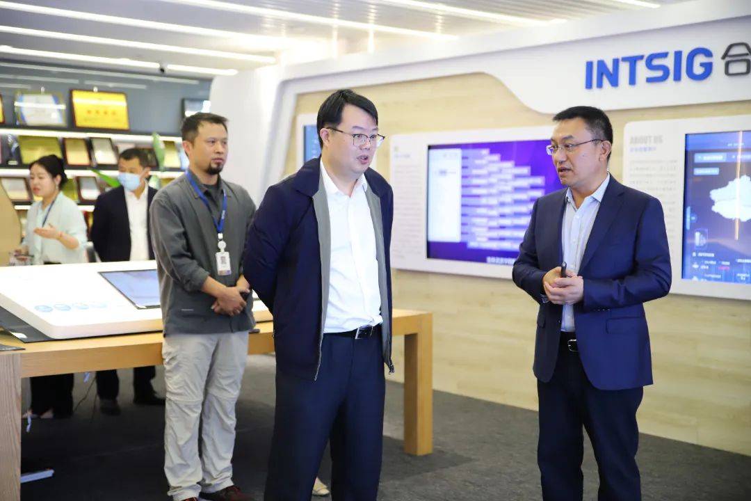 調(diào)研過程中,上海市金融工作黨委委員、市地方金融監(jiān)管局副局長管小軍一行首先參觀了市北高新園區(qū)企業(yè)AI體驗(yàn)館,深入了解園區(qū)功能定位、特色產(chǎn)業(yè)布局、科技創(chuàng)新投入等情況。在園區(qū)大數(shù)據(jù)與人工智能領(lǐng)域代表性企業(yè)合合信息,公司董事長、總經(jīng)理鎮(zhèn)立新博士詳細(xì)介紹了智能文字識別及商業(yè)大數(shù)據(jù)技術(shù)及產(chǎn)品。