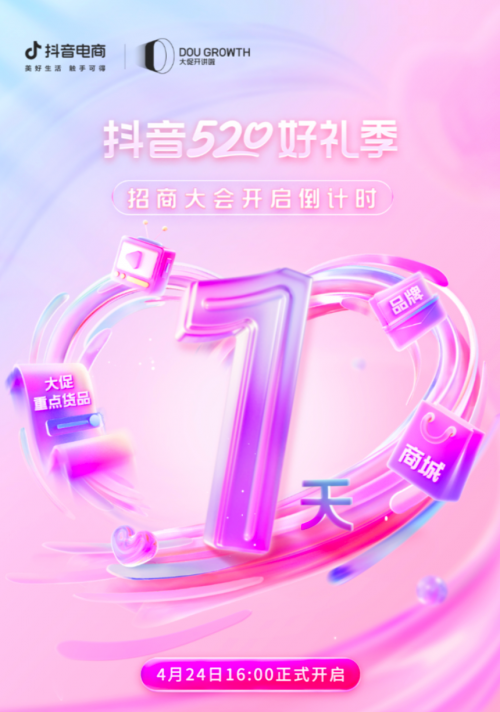 為給商家提前蓄勢520,擴(kuò)寬商家經(jīng)營生意場,「抖音520好禮季」招商大會(huì)將于4月24日16點(diǎn)正式召開,屆時(shí)將為商家披露全域億級(jí)流量扶持權(quán)益,詳細(xì)解讀貨架與內(nèi)容場景參與方法,助推商家借助營銷節(jié)點(diǎn),實(shí)現(xiàn)全域生意爆發(fā)。