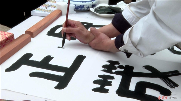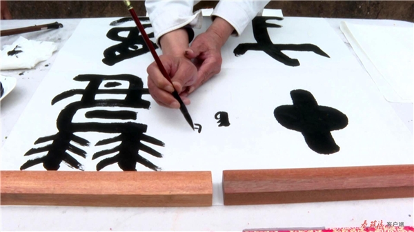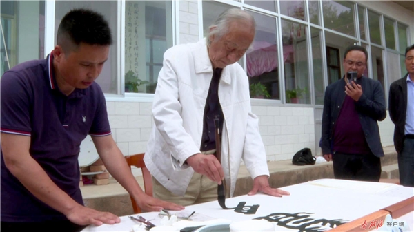在農(nóng)家小院,閻正正在聚精會(huì)神地?fù)]毫潑墨,他在筆墨的運(yùn)用上別出心裁、匠心獨(dú)運(yùn),流暢的線條蒼勁有力,書法作品淋漓盡致地展現(xiàn)于尺幅之上。談起他創(chuàng)作的靈感,閻正說,“莊浪歷史悠久、文化底蘊(yùn)深厚、森林植被覆蓋率高,儼然一幅天然山水畫。莊浪縣云崖寺自然風(fēng)光秀麗,石窟藝術(shù)精美,有遠(yuǎn)山、有水庫、有寺廟,它完全具備中國畫的每一個(gè)條件?!?/p>
