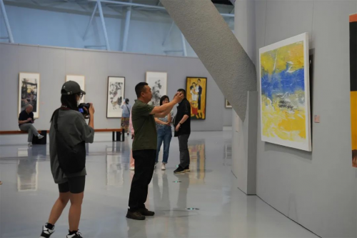 開展當(dāng)日上午,山東美術(shù)館與內(nèi)蒙古文藝界領(lǐng)導(dǎo)嘉賓、藝術(shù)家一同參觀展覽。隨后,以“黃河故事”為主題的展覽研討會(huì)順利舉辦。
