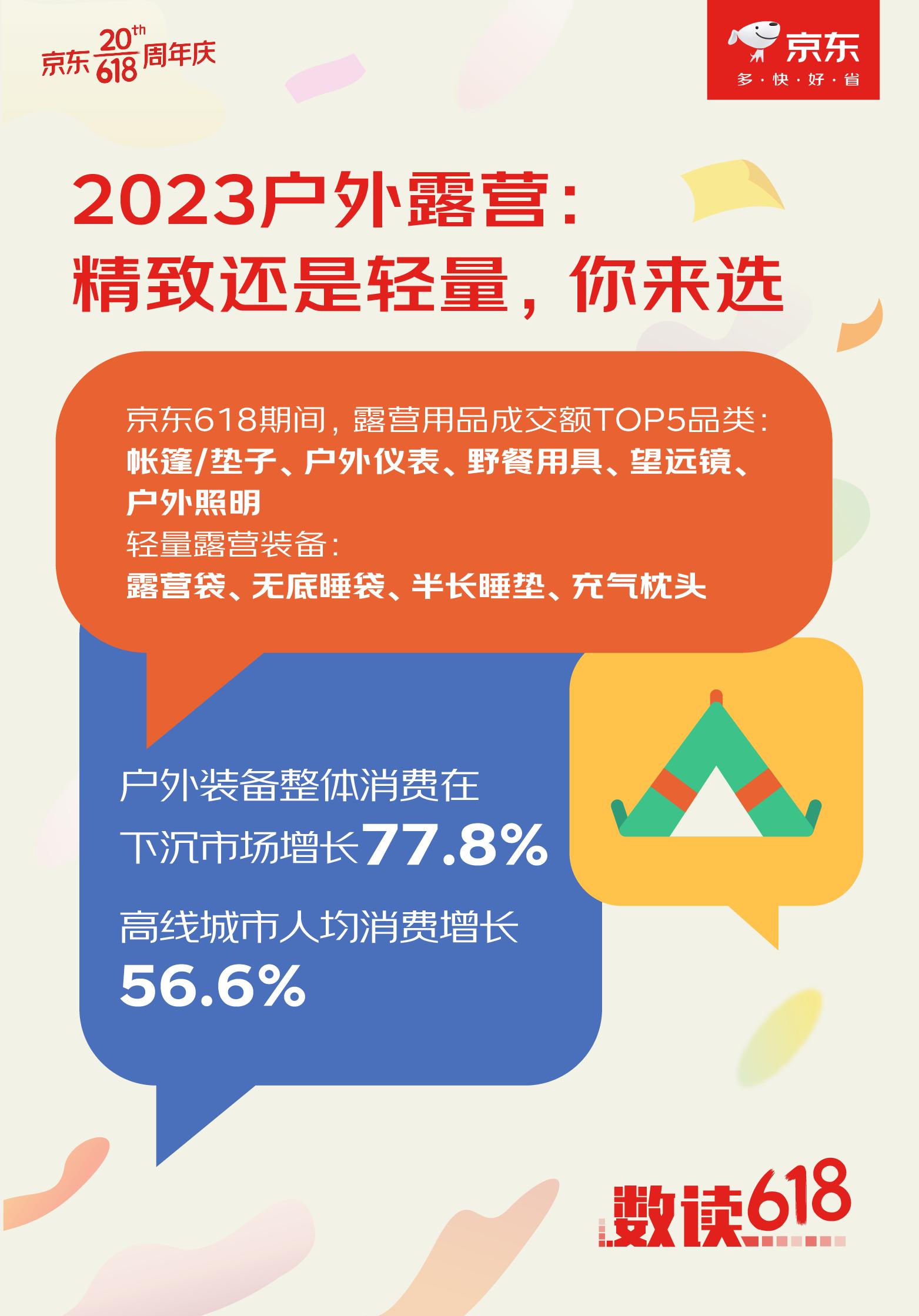 相比普通搭個(gè)帳篷看風(fēng)景,小黑玩的精致露營(yíng)更講究?jī)x式感和社交屬性,同時(shí)又是戶外場(chǎng)景,因而又衍生出“露營(yíng)+N”等多種上個(gè)性化玩法,也帶動(dòng)了更多關(guān)聯(lián)產(chǎn)品的火熱。從京東618數(shù)據(jù)銷售來看,基礎(chǔ)設(shè)備如帳篷等依然保持增長(zhǎng),但需求增長(zhǎng)更快的是專業(yè)化、細(xì)分化設(shè)備。
