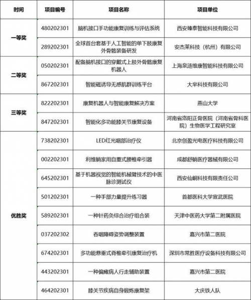 康復(fù)器械及輔具類別賽獲獎項目名單
