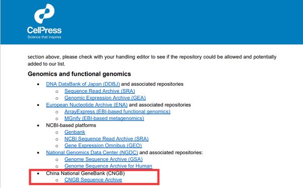 近日,國家基因庫序列歸檔系統(tǒng)(CNSA)被Cell Press(細胞出版社)推薦為基因組學(xué)和功能基因組學(xué)數(shù)據(jù)存儲庫。