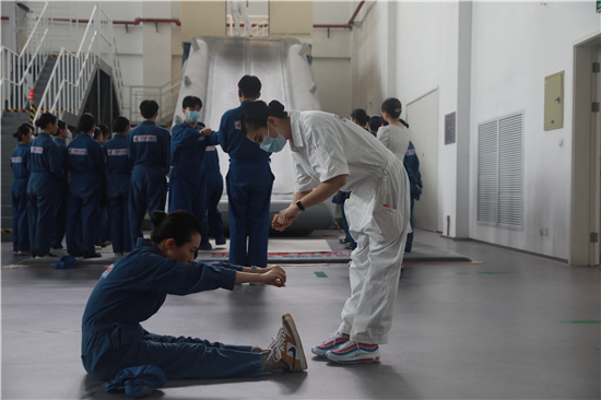 學(xué)員余其華正在進行返艙訓(xùn)練