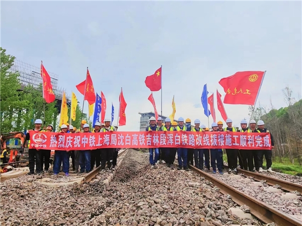 5月25日,經(jīng)過(guò)200多名建設(shè)者連續(xù)4個(gè)多小時(shí)的奮戰(zhàn),由中鐵上海工程局承建的沈白高鐵吉林段既有渾白鐵路改線(xiàn)撥接施工順利完成,改移線(xiàn)路成功接入八寶站,形成了新建白山東站在北、渾白線(xiàn)在南的合理布局。下午13:22分左右,撥接后首次46555次貨車(chē)順利從長(zhǎng)崗隧道駛出。