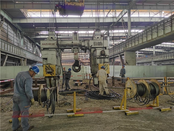 此次定修的主要項目有:板坯庫S2跨軌道緊固調整壓板更換、1號行車卷揚鋼絲繩更換、5號行車大車限位開關更換、3至7號行車夾鉗半圓滑塊拆檢給脂和行車及夾鉗緊固潤滑調整、43號行車各機構電動機及渦流制動器常規(guī)維護、31號行車主卷制動輪聯(lián)軸器更換、7號行車拖鏈更換調整等內容,此次定修是設備安全度夏的集中維護。由于此次定修正處入夏初期高溫天氣以及“安全生產月”開始,為此中冶寶鋼基層單位結合公司“安全生產月”活動要求,嚴把定修安全管控關,首先做好安全教育和交底工作,講清項目內容和危險源,講明白安全防護措施和管理要求,嚴格檢查上場工裝器具的合規(guī)性以及防暑降溫工作的落實到位情況,同時根據(jù)行車檢修高處作業(yè)的特性,著重跟蹤好作業(yè)過程的防墜落措施和維修作業(yè)標準的規(guī)范性,確保項目進度質量與人員安全受控。