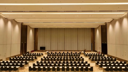 三層宴會(huì)廳,承載接待宴會(huì)等需求,通高的高大隔斷分布中間,能將宴會(huì)廳分割為兩個(gè)獨(dú)立的空間,方便靈活使用。