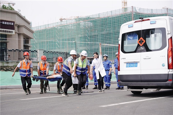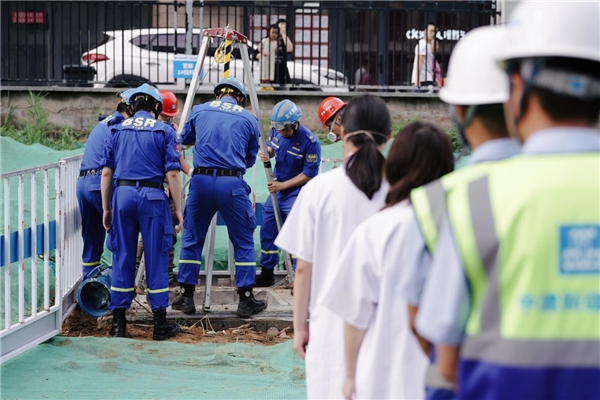 項(xiàng)目聯(lián)合青島紅十字藍(lán)天救援隊(duì)、嶗山區(qū)衛(wèi)生健康局,現(xiàn)場模擬開展對管廊內(nèi)中毒窒息人員和基坑坍塌被埋人員救援演練。