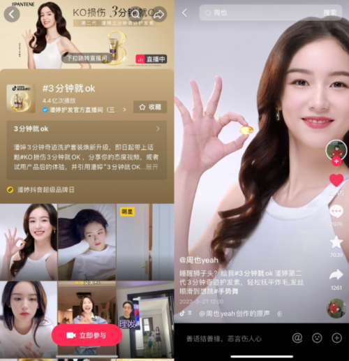 4月1日上海,潘婷與抖音電商超級(jí)品牌日攜手舉辦了以“3分鐘就OK”為主題的3分鐘奇跡洗護(hù)新品發(fā)布會(huì),重磅宣布了3分鐘奇跡洗護(hù)套裝的煥新上市,并展現(xiàn)潘婷產(chǎn)品升級(jí)后的使用體驗(yàn)及提升修護(hù)效果,助力品牌實(shí)現(xiàn)聲量和銷(xiāo)量的雙突破,也為抖音電商超級(jí)品牌日增添標(biāo)桿型范本。