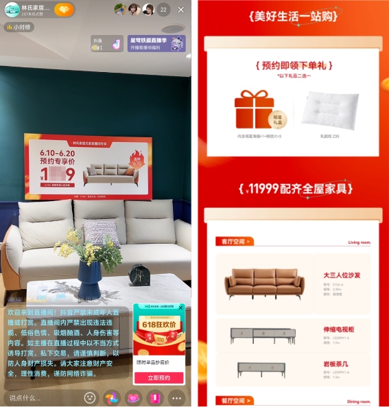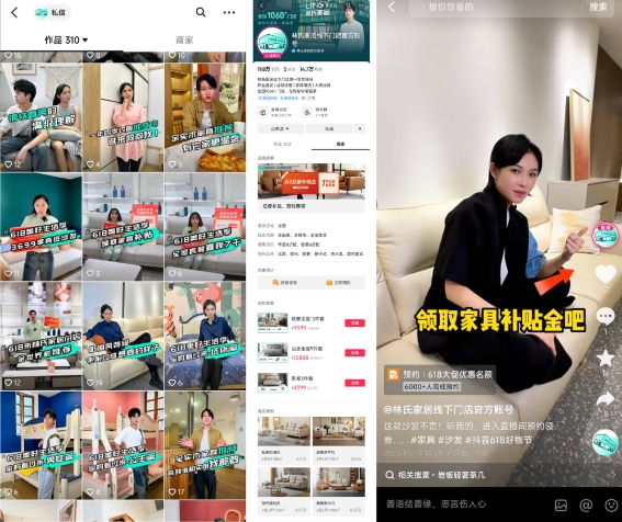 面對激烈的行業(yè)競爭,林氏家居提前一個月開始籌備大促活動,以抖音為線上核心陣地,特別推出"618美好生活季" 主題活動,參加抖音官方活動,獲得平臺多重曝光資源的加持。通過廣泛曝光,林氏家居得以持續(xù)搶占多圈層目標(biāo)用戶的注意力,提升品牌影響力。