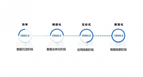 南訊向36氪展示了產(chǎn)品和服務(wù)的迭代升級,作為助力品牌連接用戶的紐帶,在不斷進(jìn)化的十三年時間里,南訊圍繞ToC領(lǐng)域CRM的進(jìn)化過程,將CRM從1.0到4.0總結(jié)為:數(shù)據(jù)沉淀階段、數(shù)據(jù)業(yè)務(wù)化階段、應(yīng)用探索階段、智能探索階段,并且提煉出了4個發(fā)展階段的核心要點:效率、精細(xì)化、互動式、數(shù)智化。