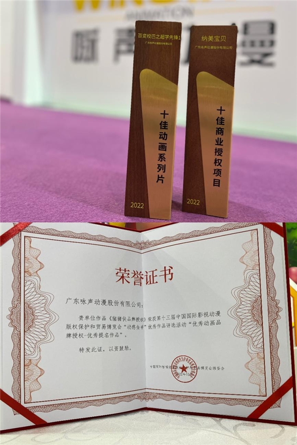 ? ? 2023年7月20日-7月23日,第十三屆中國(guó)國(guó)際影視動(dòng)漫版權(quán)保護(hù)和貿(mào)易博覽會(huì)(簡(jiǎn)稱“漫博會(huì)”)在東莞舉辦,詠聲動(dòng)漫以優(yōu)異表現(xiàn)榮獲三項(xiàng)大獎(jiǎng)。其中,豬豬俠X納美寶貝聯(lián)名系列榮獲“中國(guó)IP Bank獎(jiǎng)——十佳商業(yè)授權(quán)項(xiàng)目”,《百變校巴之超學(xué)先鋒1》榮獲“中國(guó)IP Bank獎(jiǎng)——十佳動(dòng)畫(huà)系列片”。詠聲動(dòng)漫《豬豬俠品牌授權(quán)》則斬獲“動(dòng)感金羊”優(yōu)秀動(dòng)畫(huà)品牌授權(quán)-優(yōu)秀提名作品。