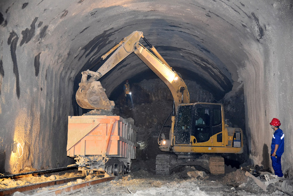 滇中引水工程建設(shè)全面提速。圖為5月30日,中國(guó)中鐵五局的建設(shè)者在滇中引水工程昆呈隧洞9號(hào)支洞內(nèi)施工。新華社記者 林碧鋒 攝