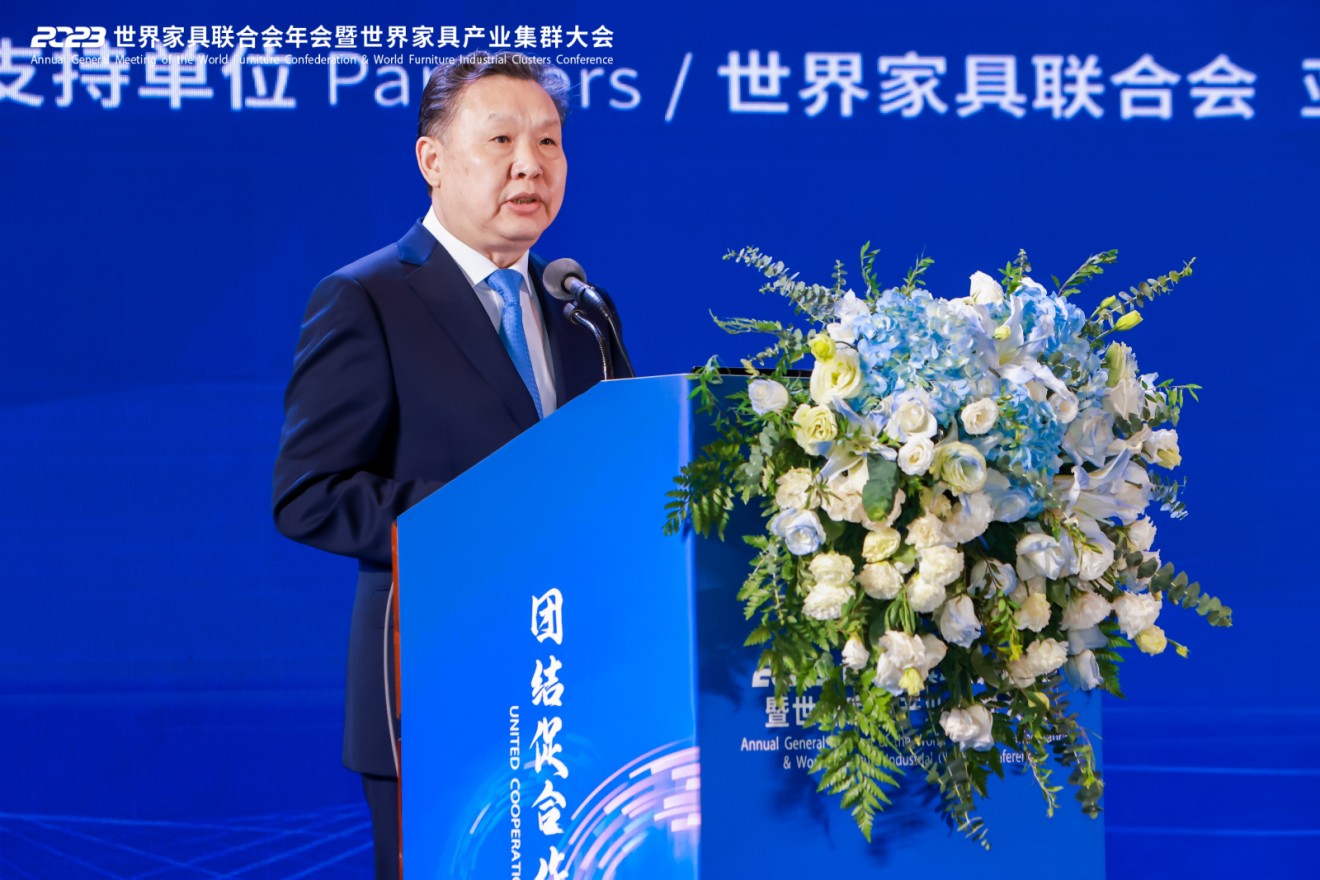 世界家具聯(lián)合會主席、亞洲家具聯(lián)合會會長、中國家具協(xié)會理事長徐祥楠發(fā)表《團結(jié)促合作,攜手創(chuàng)未來》的主旨講話。他指出,世界正在全面復(fù)蘇,時代變革加速演進,家具行業(yè)已形成國際深度合作、地區(qū)廣泛協(xié)同的產(chǎn)業(yè)格局。未來,世界的競爭將由企業(yè)、行業(yè)、產(chǎn)業(yè)鏈之間的競爭演變?yōu)楫a(chǎn)業(yè)集群和產(chǎn)業(yè)生態(tài)之間的競爭,產(chǎn)業(yè)集聚化是制造業(yè)結(jié)構(gòu)調(diào)整和轉(zhuǎn)型升級的必由之路。中國家具協(xié)會在各國會員的支持下,發(fā)起中國東莞世界級家具產(chǎn)業(yè)集群項目,打造世界“工業(yè)制造”之都、“集群示范”之都、“展覽貿(mào)易”之都、“智慧管理”之都、“設(shè)計創(chuàng)新”之都、“跨境電商”之都,為促進跨國合作、共享產(chǎn)業(yè)資源搭建國際公共平臺。世界家具聯(lián)合會也將基于國際網(wǎng)絡(luò),以龐大的產(chǎn)業(yè)規(guī)模、完善的創(chuàng)新能力、開放的生態(tài)模式,支持各國集群建設(shè)工作,促進發(fā)達制造與新興制造相結(jié)合,推動全球家具行業(yè)邁入先進制造之列,讓各國切實享受到全球化帶來的普惠成果,并同各方一道,團結(jié)凝聚更多產(chǎn)業(yè)共識,朝著構(gòu)建高質(zhì)量伙伴關(guān)系的正確方向攜手奮進,共同譜寫繁榮發(fā)展新篇章!
