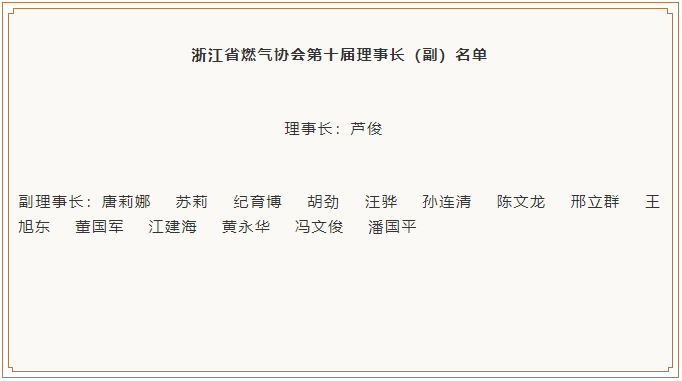 浙江省燃氣協(xié)會第十屆常務理事單位名單