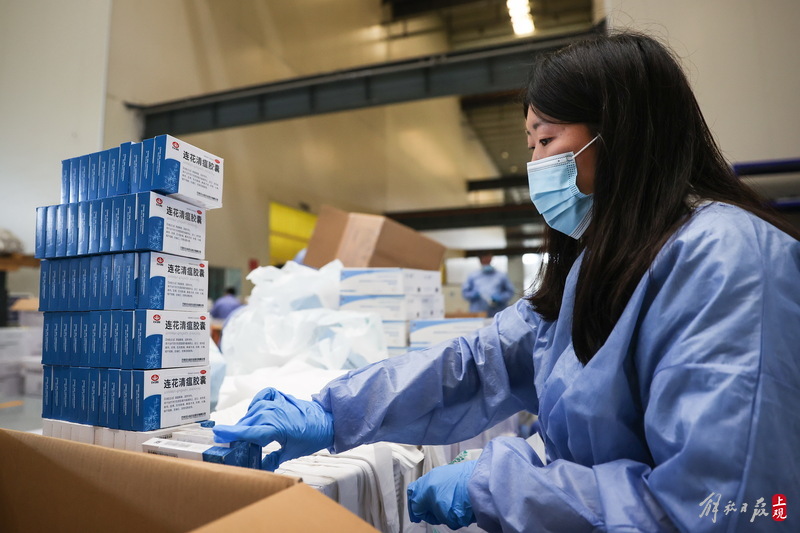 每個服務(wù)包內(nèi)有口罩、連花清瘟膠囊、抗原測試盒,并附有一張上海市疫情防控工作領(lǐng)導(dǎo)小組辦公室的心意卡。