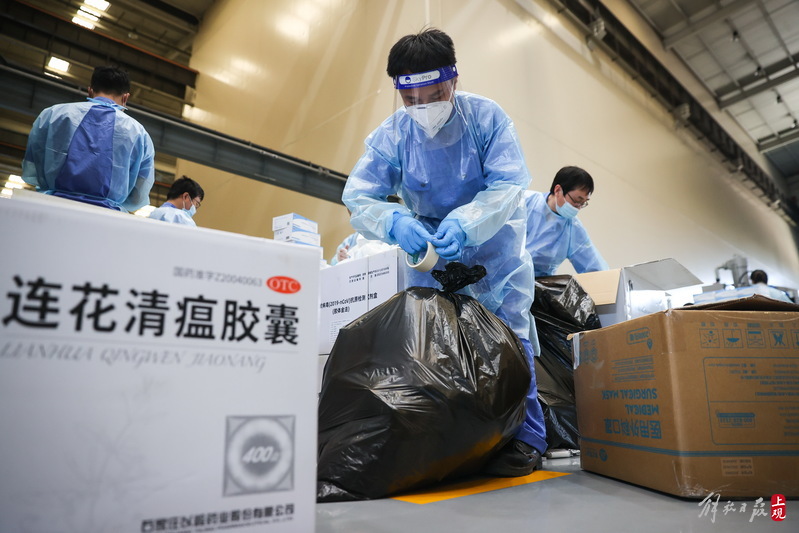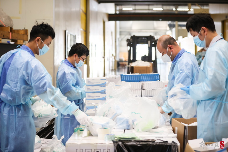 現(xiàn)場負責(zé)人楊東告訴記者:“我們是4月6日晚上接收到分裝任務(wù),目前累計打包送出8萬余份‘防疫服務(wù)包’,我們從早到晚能快一點就快一點,就想著盡快把物資打包好送到居民手中?!?/p>