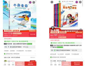 據(jù)了解,自4月20日第三季“多多讀書月”啟動以來,科普百科、藝術繪本、兒童文學等多種類型的童書是最受歡迎的拼單商品之一,包括DK兒童百科全書系列、世界兒童文學名著繪本、迪士尼雙語閱讀讀本、《笑貓日記》系列等熱門童書被“寶媽”們在多個社交平臺中分享。