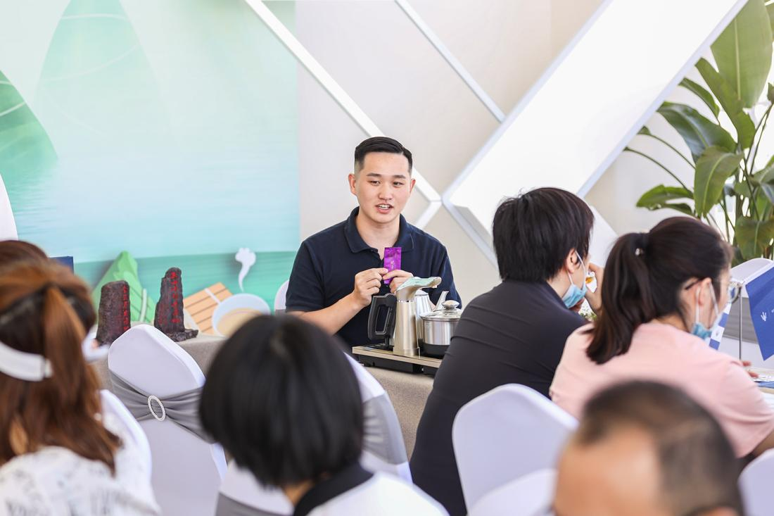 “一掬眉芽和露煮,春光滿溢正山堂?!笔制鹚?#xff0c;正山堂茶藝師以專業(yè)的沖泡手法引領(lǐng)大家走進(jìn)正山春茶的芬芳世界。