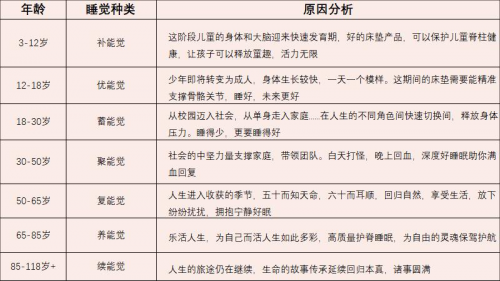 據(jù)了解,這8種覺囊括從新生到暮年的8個(gè)階段,每個(gè)階段根據(jù)人的身體發(fā)育需求、身體特征,結(jié)合所處年齡階段、社會環(huán)境等因素,來選擇不同的床墊,進(jìn)而滿足人在每個(gè)階段好好睡覺的需求。