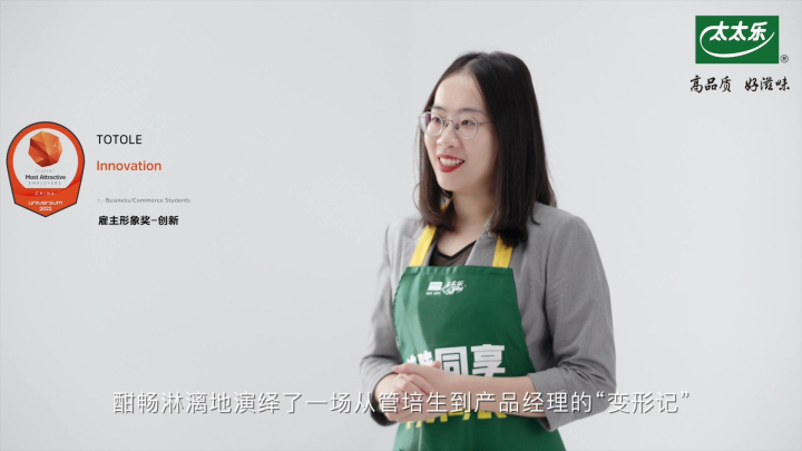 產(chǎn)品經(jīng)理Grace:太太樂作為中國(guó)雞精品類的領(lǐng)“鮮“者,其創(chuàng)立之初就自帶創(chuàng)新的基因。34年后的今天,太太樂正在開發(fā)更多滿足消費(fèi)者需求的新產(chǎn)品,我也有幸成為了其中的參與者。在工作中創(chuàng)造不同的同時(shí),得益于定制化的職業(yè)發(fā)展路徑,我成功從一名管培生蛻變成了獨(dú)當(dāng)一面的產(chǎn)品經(jīng)理,獨(dú)立負(fù)責(zé)一個(gè)產(chǎn)品系列和領(lǐng)導(dǎo)一支團(tuán)隊(duì)。作為這種鼓勵(lì)創(chuàng)新、擁抱人才的文化的受益者,我也會(huì)在接下來的團(tuán)隊(duì)管理中支持晚輩的新點(diǎn)子,為他們提供職業(yè)發(fā)展指導(dǎo),助力他們成為更好的自己。