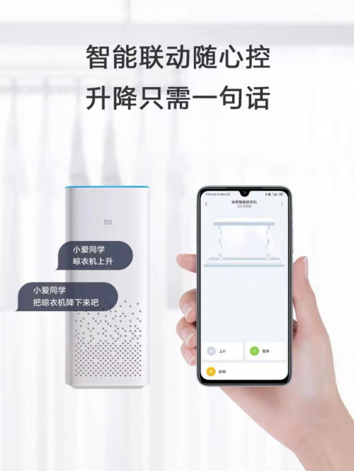 傳統(tǒng)式晾衣架費(fèi)力又費(fèi)時(shí),米家智能晾衣機(jī)不僅能夠解放雙手,讓晾衣輕松又有趣。在操控上既可以使用無線遙控器來實(shí)現(xiàn)晾衣機(jī)的升、降、照明,還可以使用米家App智能控制與小愛語音控制,通過手機(jī)即可實(shí)現(xiàn)升、降、暫停、照明等操作。米家是智能互聯(lián)的時(shí)代弄潮兒,晾衣機(jī)可以隨心聯(lián)動(dòng)米家平臺(tái)智能家居,洗衣機(jī)洗好,晾衣機(jī)就已經(jīng)就位。懂你,越來越懂你。