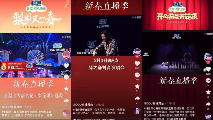 同樣是在今年CNY活動期間,優(yōu)萃有機奶粉合作了《梨園又一春》、《薛之謙演唱會》、《開心麻花開箱夜》等自帶關(guān)注度、話題性和高熱曝光的直播項目,這其中涵蓋戲曲、音樂、小品等多類型,滿足了不同圈層受眾的內(nèi)容需求。無論是別致氣韻的戲曲盛宴、讓人捧腹的喜劇專場還是高品質(zhì)音樂沉浸表演,都將春節(jié)氛圍拉至高潮,而借勢節(jié)目本身的影響力和傳播力,優(yōu)萃有機奶粉在收獲不俗流量的同時,再一次將“讓小寶寶先吃上有機食品”的品牌信息進(jìn)行了生動植入。