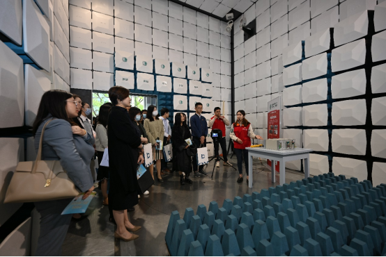 電科院工會主席董正雅帶領(lǐng)活動嘉賓和青年代表參觀電科院創(chuàng)新實驗室、儲能系統(tǒng)。為大家講解高壓變電站產(chǎn)生的電磁場的專業(yè)監(jiān)測設(shè)備是如何運作的,并解釋其工作原理。