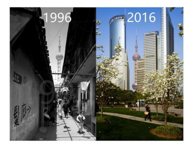 近30年前,攝影師姚建良在浦東陸家嘴棚戶區(qū)拆遷前夕,曾拍下這樣一張照片: