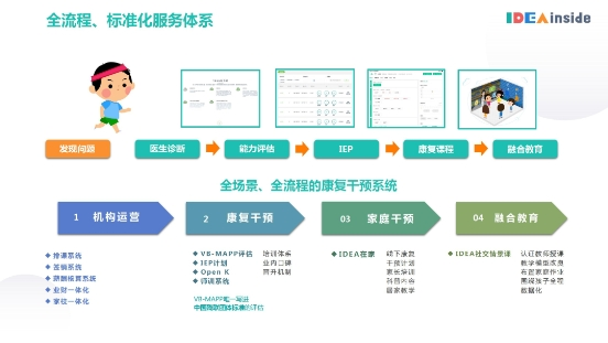 只需一間20平米的示范教室,運(yùn)用標(biāo)準(zhǔn)化的服務(wù)方案,就可以把深耕行業(yè)多年沉淀的IDEA教學(xué)模式帶回機(jī)構(gòu)/學(xué)校/幼兒園/醫(yī)療單位,進(jìn)行數(shù)字化、標(biāo)準(zhǔn)化的康復(fù)干預(yù)。一個(gè)標(biāo)準(zhǔn)的、數(shù)字化管理的愛(ài)迪因教學(xué)示范教室,可以復(fù)制到任何一個(gè)線下中心,開展專業(yè)兒童康復(fù)干預(yù)。