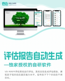 評(píng)估環(huán)節(jié)  評(píng)估報(bào)告自動(dòng)生成!使用獨(dú)家授權(quán)的自研軟件——VB-MAPP評(píng)估系統(tǒng)進(jìn)行評(píng)估,系統(tǒng)自動(dòng)生成評(píng)估報(bào)告,展現(xiàn)孩子現(xiàn)階段的真實(shí)能力水平,指導(dǎo)孩子下個(gè)階段的干預(yù)目標(biāo)。