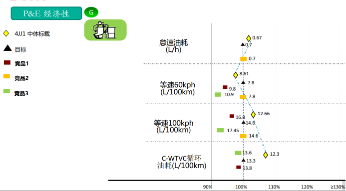 當車輛怠速時,發(fā)動機的轉(zhuǎn)速僅600轉(zhuǎn),在省油的同時,又進一步降低了發(fā)動機噪音,百公里油耗較同類機型油耗低5%以上。它的額定功率點燃油消耗率為215 g/(kW·h),在WTVC綜合油耗及等速油耗均優(yōu)于競品。