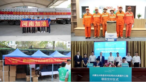 除了高考助力以外,朗詩德凈水器也曾積極參與過許多其他公益活動。2019年,朗詩德凈水器積極助力內(nèi)蒙凈水扶貧,憑借對復(fù)雜水質(zhì)的多年研究,為三千多戶水質(zhì)不達(dá)標(biāo)的農(nóng)村人家,安裝上朗詩德L2凈水器,惠及農(nóng)戶上萬人;2020年,朗詩德為湖南省城步縣捐贈防疫物質(zhì);2021年7月,朗詩德公司在河南省發(fā)生特大暴雨后,幫助河南災(zāi)后重建,捐贈價(jià)值上千萬的朗詩德凈水器,助力河南災(zāi)后重建;同年9月,朗詩德凈水器通過莆田慈善總會、杭州慈善總會捐贈千盒愛心月餅,向醫(yī)護(hù)人員和一線勞動者送上這份獨(dú)屬于中秋的溫暖;2022年,朗詩德給北白象鎮(zhèn)勞動者環(huán)衛(wèi)驛站的工人們送去了一臺L3純水機(jī)以及GA406K-2管線機(jī),有效解決了環(huán)衛(wèi)工人“喝水難”的問題,讓環(huán)衛(wèi)工人感受到社會的關(guān)愛和城市的溫暖。