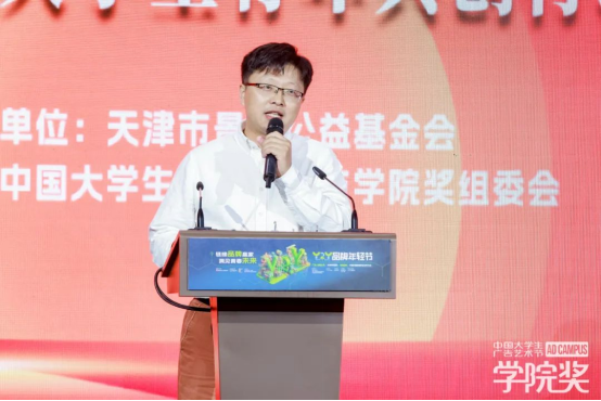 悅康藥業(yè)股份有限公司創(chuàng)始人、董事長于偉仕先生致辭。悅康藥業(yè)成立于2001年,是以高端化學(xué)藥為主導(dǎo)的大型醫(yī)藥企業(yè)集團、是以研發(fā)創(chuàng)新為驅(qū)動的國家級高新技術(shù)企業(yè)。悅康藥業(yè)致力于為百姓研發(fā)用的起的好藥,始終在堅守“營造全球喜悅,關(guān)愛人類健康”的愿景下不斷前行。今年6月,悅康藥業(yè)首次牽手學(xué)院獎,通過青年共創(chuàng),促進健康意識的傳遞,提升品牌傳播的廣度與深度,以及在年輕群體當(dāng)中的認知度和美譽度;通過年輕人的創(chuàng)意,讓品牌更有生命力。悅康藥業(yè)將致力于品牌年輕化工程,在校企合作、產(chǎn)教融合領(lǐng)域作出更多探索。