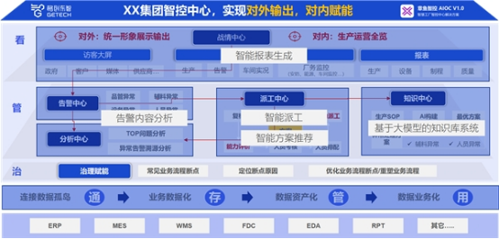 比如,格創(chuàng)東智為某頭部半導體工廠推出的智慧工廠一體化智控中心解決方案(1+4+1),以生產(chǎn)執(zhí)行和公司運營為基準,通過建立1個數(shù)據(jù)平臺、4個中心(戰(zhàn)情中心、告警中心、派工中心、分析中心)、1個知識庫,打造高效率、高可靠的智能集控中心,利用OctopusGPT實現(xiàn)了戰(zhàn)情中心報表自動生成、告警內容分析、智能派工管理閉環(huán)、基于行業(yè)大模型的知識庫等智能化功能,使工廠營運管理過程更加智能高效,為企業(yè)帶來持續(xù)的價值和競爭優(yōu)勢。