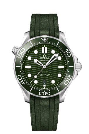 這款海馬系列300米潛水表搭配綠色波紋表盤。表殼為42毫米,采用精鋼材質(zhì)打造,經(jīng)拋光和拉絲處理,搭配單向旋轉(zhuǎn)拋光綠色陶瓷表圈,飾以由“大明火”工藝制成的白色琺瑯潛水刻度,12點(diǎn)位設(shè)有覆以Super-LumiNova夜光涂層的圓點(diǎn),在暗黑環(huán)境中呈現(xiàn)以綠色效果。旋入式表背經(jīng)拋光和拉絲工藝打磨,飾有波紋邊緣,透過(guò)藍(lán)寶石玻璃表背,可以欣賞到歐米茄8800至臻天文臺(tái)機(jī)芯的運(yùn)轉(zhuǎn)美態(tài)。對(duì)于喜愛(ài)運(yùn)動(dòng)風(fēng)格的人士而言,腕表搭配一體式綠色橡膠表帶,更便于運(yùn)動(dòng)佩戴。