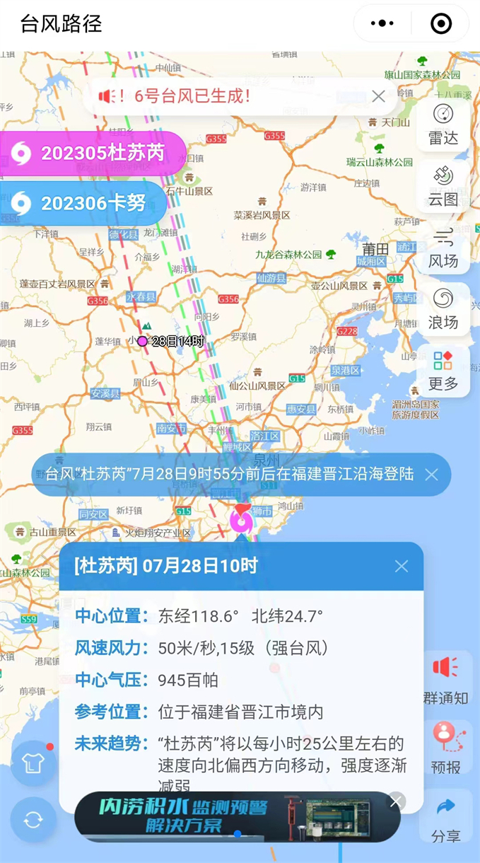 超強(qiáng)臺(tái)風(fēng)“杜蘇芮”于2023年7月21日上午在西北太平洋洋面生成,于7月25日被中央氣象臺(tái)升至17級(jí)以上(62米/秒);于7月28日9時(shí)55分前后以強(qiáng)臺(tái)風(fēng)級(jí)(50米/秒)在福建省晉江市沿海登陸,成為有完整記錄以來(lái)登陸福建泉州的最強(qiáng)臺(tái)風(fēng),并已對(duì)福建泉州、晉江等城市造成嚴(yán)重影響。